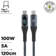 Cable Tipo C a Tipo C 100W con pantalla LCD, diseñado para quienes buscan potencia, control y sostenibilidad en un solo accesorio. Carga rápida, segura y con información en tiempo real de la energía que recibe tu dispositivo.