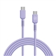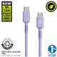Cable para carga y transferencia de datos con conector Tipo C a Tipo C, 3A transferencia rápida,1.2m de longitud, en color lavanda, 100% reciclable y fabricado con materiales reciclados de origen certificado RCS - RECYCLED CLAIM STANDARD.