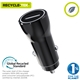 El cargador de coche de un elegante diseño patentado de muvit for change, está fabricado con plástico reciclado de origen certificado. Dispone de 1 puerto de salida USB 3A 15W, en color negro y 100% reciclable. (cable no incluido).