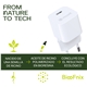 El cargador de pared muvit for change BiooFnix 30W representa una nueva generación de tecnología más respetuosa con el planeta. Fabricado a partir de aceite de ricino transformado en bioresina, este cargador nace literalmente de una semilla, como símbolo de innovación sostenible y compromiso medioambiental.