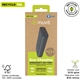 Batería externa de 20000 mAh de color negro de muvit for change. Esta Power Bank dispone un 2 puerto USB A y está hecha con materiales reciclados y reciclables y batería de litio. Incorpora un cable USB-C de 30 cm de TPE reciclado.